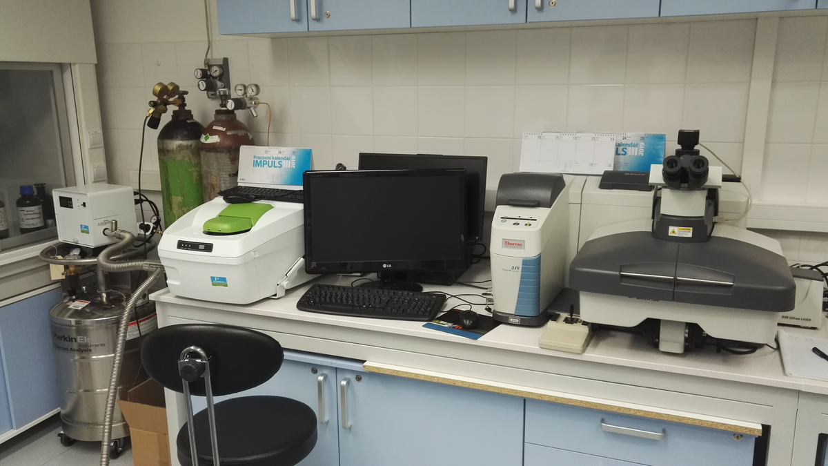 Thermo Scientific DXR Raman microscope interfaced to an Olympus microscope equipped with the set of excitation lasers 445, 532, 633 and 780 nm used for solid state micro-samples characterization. This spectrometer can also employ low/high-temperature accessory Linkam Scientific Instruments SP600) for the phase transformations study (90-500 K).