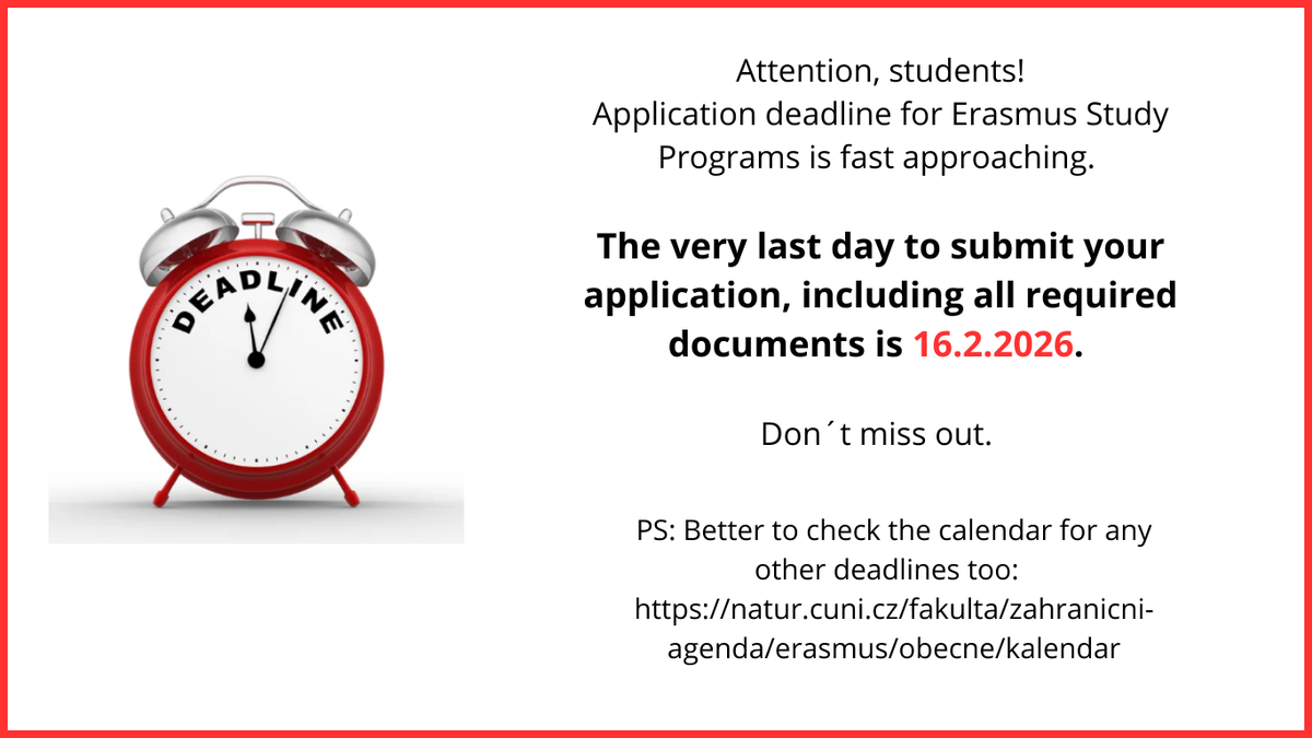 👉 https://natur.cuni.cz/fakulta/zahranicni-agenda/erasmus/obecne/kalendar