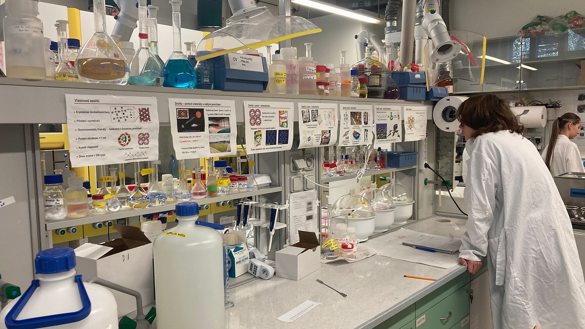 The students synthesized organic compounds, worked with zeolites and catalysts, and gained hands-on experience with advanced techniques and instruments not usually available at high schools. They were also accommodated in university dormitories, giving them a taste of student life at Charles University.