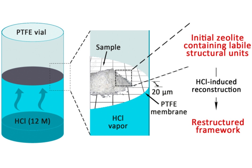 Zeolites are crystalline porous materials used in gas separation and catalysis. Although millions of thermodynamically stable structures have been predicted, until now, the zeolite community has only recognized approximately 250 different zeolite topologies. Such discrepancy between the numbers of proposed zeolite topologies and those prepared via traditional hydrothermal approaches has prompted the development of alternative strategies for zeolite synthesis, in particular ADOR (Assembly-Disassembly-Organization-Reassembly). ADOR is a unique approach because the topology of new zeolites can be easily predicted based on the parent structure. However, attempts to transform fragile structures (for example, zeolite of IWW structural type) using this approach have been unsuccessful thus far. Yet, these researchers from the Department of Physical and Macromolecular Chemistry developed a straightforward strategy to construct new zeolites through non-contact vapour-phase-transport rearrangement. This method offers the opportunity to prepare new zeolite topologies otherwise inaccessible by both hydrothermal and conventional ADOR synthesis routes. In addition, combining in situ diffraction and X-ray absorption spectroscopy makes it possible to follow the mechanism of the rearrangement process and to describe intermediate structures. The successful application of vapour-phase-transport rearrangement to zeolites of different topologies highlights therefore the potential of this technique for 3D-to-3D transformations of crystalline materials with labile frameworks collapsing upon contact with the solvent. Moreover, in combination with other methods for post-synthesis alteration of 3D frameworks, this approach enables the manipulation of the structures of anisotropically labile materials.