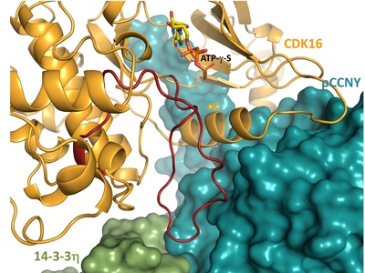 Cyclin-dependent protein kinase 16 (CDK16) regulates both physiological and pathological processes, including autophagy, spermatogenesis and cancer. Unlike other CDKs, CDK16 is regulated by an unclear mechanism involving phosphorylated cyclin Y (pCCNY) in complex with 14-3-3 proteins rather than CCNY alone. In this study, research teams from the Department of Physical and Macromolecular Chemistry (website) and the Institute of Physiology of the CAS (website) have elucidated this mechanism by structurally and functionally characterizing CDK16 in complex with pCCNY and 14-3-3. Utilizing cryo-EM analysis and hydrogen/deuterium exchange coupled to mass spectrometry, the researchers demonstrated that 14-3-3 binding modulates the conformation of a key moiety of the CDK binding surface of pCCNY, thereby enabling CDK16 activation. These findings not only clarify the role of pCCNY and 14-3-3 in CDK16 activation but also highlight the potential of targeting CDK16 protein-protein interactions for cancer therapy.