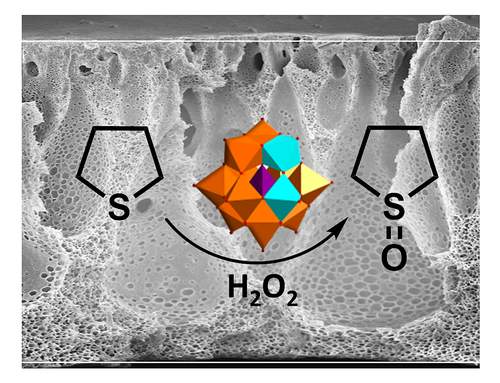 Figure 2: Oxidation of tetrahydrothiophene to the corresponding sulfoxide under flow using immobilized Mn-V-POMs in block copolymer membranes.