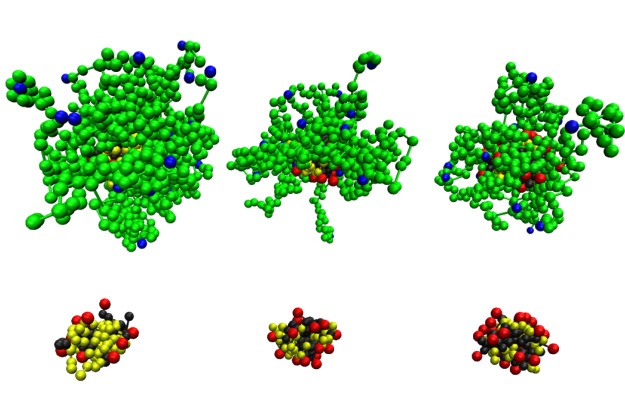 Computer study of the solubilization of polymer chains in polyelectrolyte complex cores of polymeric nanoparticles in aqueous media