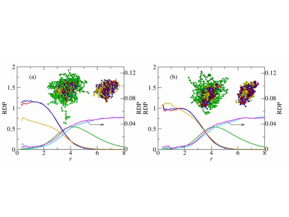 Amphiphilic copolymers and polyelectrolytes respond to external stimuli and form various nanostructures in complex aqueous solutions containing other species. Chemical modification of hydrophilic, hydrophobic or charged copolymers can change their aggregation behavior and cause the formation of new structures or even prevent the assembly at all. Better understanding of the thermodynamics of such solutions is necessary to tailor the stimuli-responsive polymer architectures for pharmaceutical and biomedical applications. The project assumes extensive dissipative particle dynamics study of polymer systems.